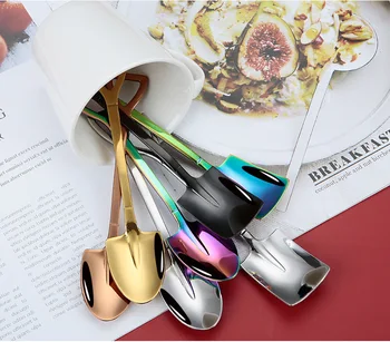 Shovel Spoon Stainless Steel Teaspoon For Coffee Spoon Fruit Ice Cream Dessert Scoop Kitchen Accessories Wedding Christmas Gift