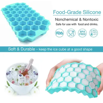 SILIKOLOVE kreatywna kostkarka do lodu o strukturze plastra miodu wielokrotnego użytku tace silikonowa forma kostki lodu BPA wolna forma lodowa z wymiennymi pokrywkami