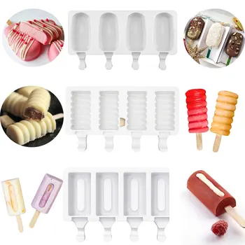 Silicone Ice Cream Mold DIY Homemade Popsicle Moulds Freezer 4/3 Cell Small Size Ice Cube Tray Popsicle Barrel Makers