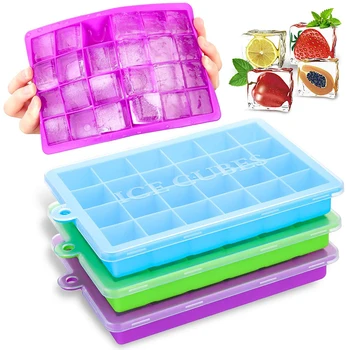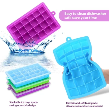 Silikonowa taca na kostki lodu 24/15 siatka kwadratowa foremka do kuli lodowej z elastycznym uwalnianiem kostkarka do lodu Bar narzędzia kuchenne forma do lodu