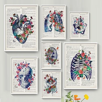 Skandynawski nadruk plakaty anatomia narządy ludzkie serce mózg obraz ścienny na płótnie klasyczna ściana zdjęcia do wystroju kliniki medycznej