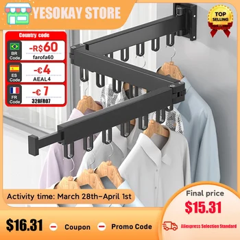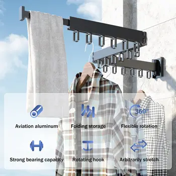 Składany wieszak na ubrania do montażu na ścianie chowany suszarka do ubrań wewnątrz i na zewnątrz oszczędność miejsca aluminium pranie w domu bielizny