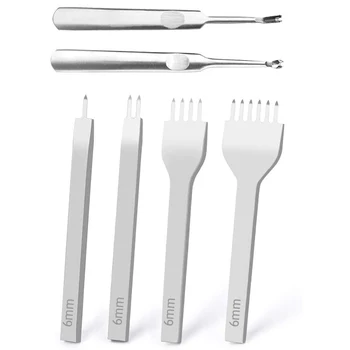 Skórzane dziurkacze kaletnicze 1 + 2 + 4 + 6 Prong DIY diamentowe sznurowanie szwy zestaw dłut U/V w kształcie Groover skórzana krawędź Beveler narciarstwo narzędzia