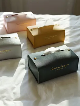 Skórzane pudełko na chusteczki toaletowe pudełko do pompowania domu dekoracja salonu sypialnia kuchnia pulpit Nordic duże pudełko na chusteczki hurtowo