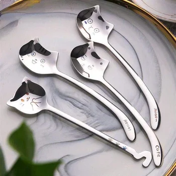 Śliczne łyżeczka do deserów 304 ze stali nierdzewnej łyżka do posiłków kreatywna łyżka słodki kociak łyżka do mieszania kawy darmowa wysyłka łyżeczka do kawy