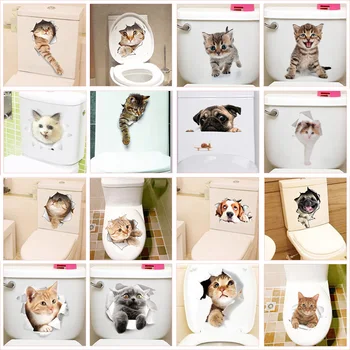 Śliczne Kitten naklejki na toaletę naklejki ścienne 3d Hole z kotami zwierzętami Mural ozdoby do dekoracji wnętrz lodówka plakaty