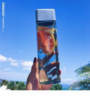 Śliczne nowe kwadratowa herbata mleko owoce kubek wody 500ml do butelek na wodę napój z liny przejrzyste Sport w stylu koreańskim odporne na ciepło