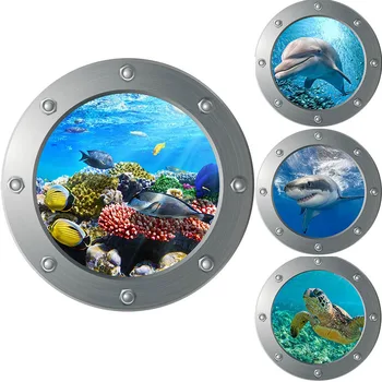 Śliczne Shark koralowa ryba żółw morze świat zwierzęta 3D okno Submarine Home Decor naklejka ścienna do ubikacji kalkomania do salonu Xmas