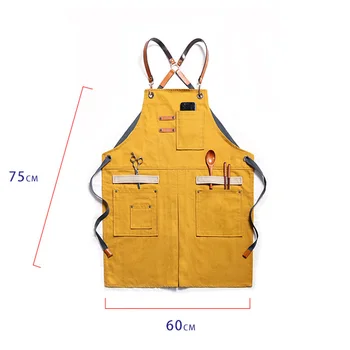 Solidne żółte płótno fartuch mistrza do akcesoriów kuchennych kieszeń Cafe fartuszek sprzątanie domu pieczenie fartuch roboczy dla fryzjera