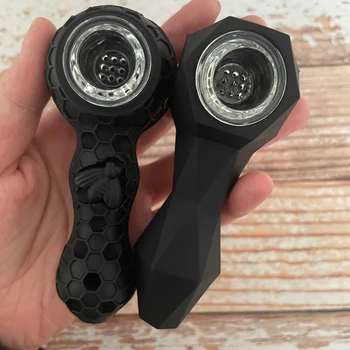 Solidna czarna fajka silikonowa z szklana miska fajka do tytoniu 4 cale