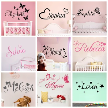 Spersonalizowana nazwa własna motyl w kształcie serca naklejki ścienne do przedszkola dekoracja pokoju dziecięcego naklejki winylowe sypialnia Home decor