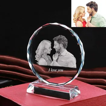 Spersonalizowana okrągła kryształowa ramka na zdjęcia 2D grawerowany laserem szklane zdjęcia Ablum Keepsake prezenty na urodziny Newbaby