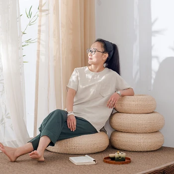 Styl japoński zagęścić Futon poduszka do medytacji Tatami Rattan okrągły joga poduszki naturalne słomy tkane Kowtow poduszki Home Decor