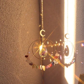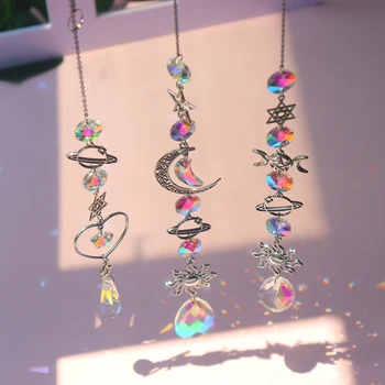 Suncatcher kryształowy dzwonek wietrzny gwiazda księżyc słońce łapacze Windchimes Plated kolorowe koraliki wiszące spadek na wystrój ogrodu Craft