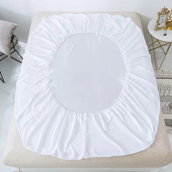 Wodoodporne dopasowane prześcieradło jednokolorowe pokrycie materaca z cztery rogi elastyczny przepuszczający powietrze rozmiar Queen Sheet Bed Protector Topper
