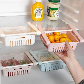 1PC Organizer do kuchni dostarcza kuchenny pojemnik do lodówki Rack lodówka z zamrażarką uchwyt półki wysuwana szuflada akcesoria domowe