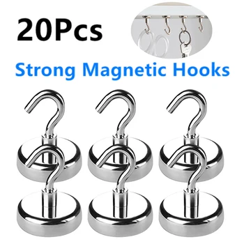 20 sztuk silne haczyki magnetyczne Heavy Duty haki ścienne strona główna kuchnia wisząca półka barowa organizacja wieszak klucz płaszcz puchar wiszące wieszak