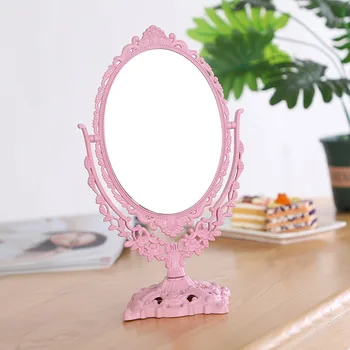 2021 Nordic Silver plastikowa dekoracja w stylu Vintage lustro małe okrągłe makijaż lustro do sypialni Ins stół stojący lustro szklane