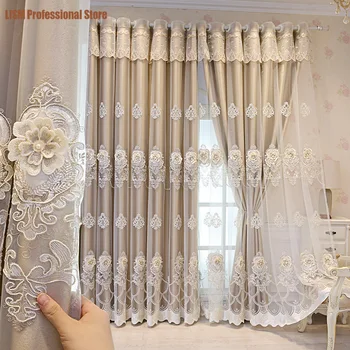 2022 nowe zasłony w stylu europejskim do salonu dwuwarstwowa tiulowa zasłona jak z gazy sypialnia luksusowa ekstrawagancja haftowana