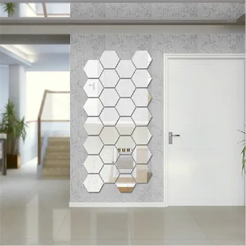 24 szt. Sześciokątne lustro naklejki samoprzylepne płytki z mozaiką łazienka lustro ozdobne naklejki wystrój łazienki nowoczesne akcesoria
