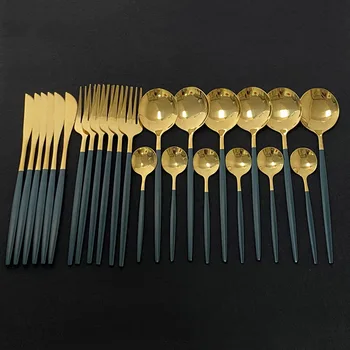 24 sztuk kolorowe naczynia stołowe zestaw ze stali nierdzewnej stalowe sztućce zestaw kuchnia lustro złota zestaw stołowy nóż widelec łyżka zestaw obiadowy
