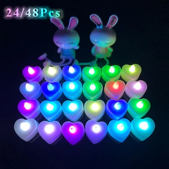 24/48 bezpłomieniowa świeca LED z wymienną baterią kolorowa elektroniczna świecąca dekoracja domu ślub walentynki urodziny 2022 nowy rok dekoracja plastikowa sztuczna świeca w kształcie serca hurtowo