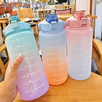 2L butelka wody o dużej pojemności kubek ze słomką Gradient plastikowe kubki na wodę z markerem czasu Outdoor Fitness butelki sportowe