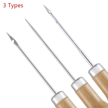 3 sztuk/zestaw drewniany uchwyt szycia szydło ręcznie Stitcher skórzany punktak pneumatyczny DIY naprawy butów hak narzędzie akcesoria skórzane