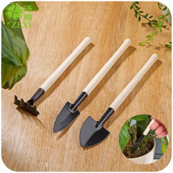 3 sztuk/zestaw Mini Spade łopata brona doniczka narzędzia rośliny doniczkowe konserwacja drewniany uchwyt roślin gleby łopaty narzędzia ogrodnicze