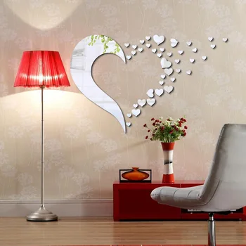 31 sztuk serce akrylowa naklejka na ścianę lustro nieregularne lustro lustro kosmetyczne dekoracja salonu lustra ozdobne pełne lustro